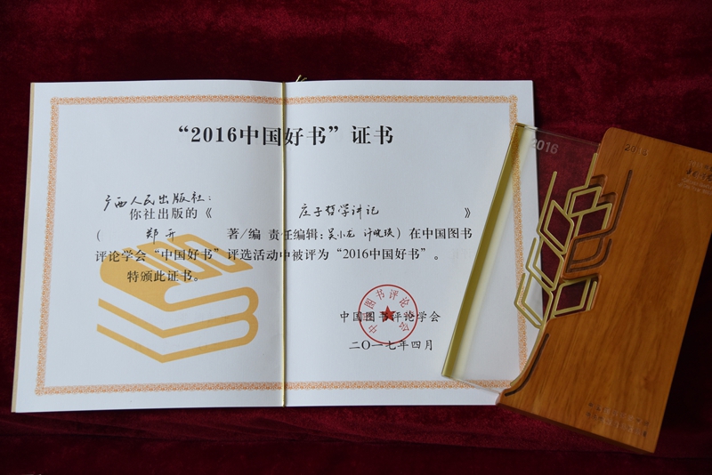 《庄子哲学讲记》获2016年度中国好书奖证书和奖杯