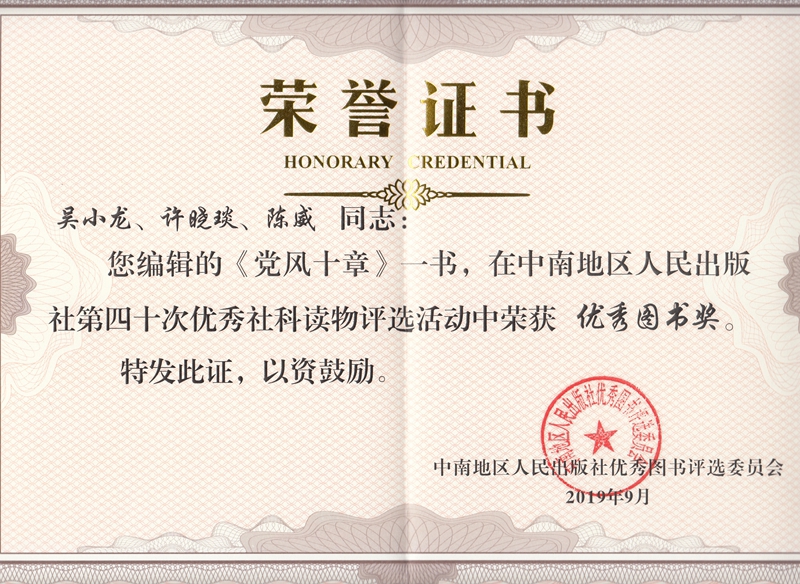《党风十章》中南地区人民出版社第四十次优秀社科读物