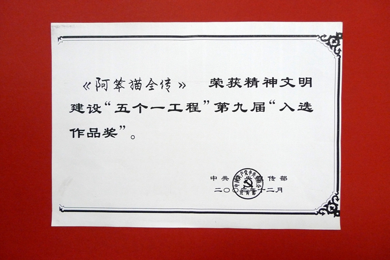 2003-“五个一工程”入选作品奖《阿笨猫全传-中共中央宣传部(复印件)